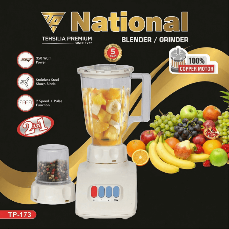 TP-173 National 2-in-1 Blender & Grinder – 350W Copper Motor – Stainless Steel Blades – High-Speed & Durable